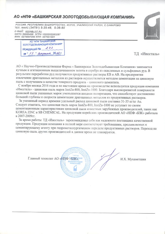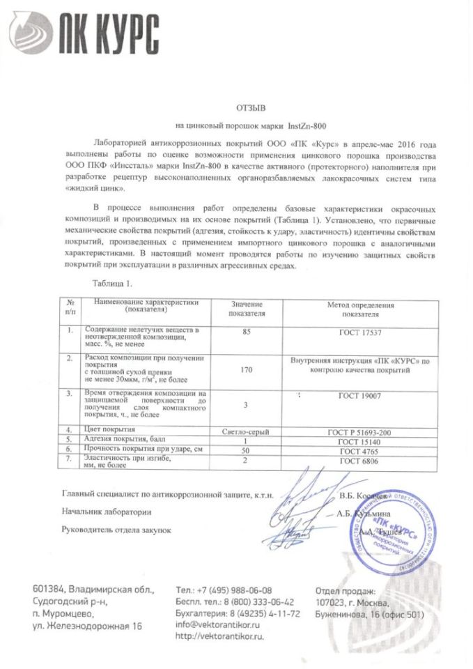 Потребители, которым требуется, чтобы цинковый порошок проявлял различные свойства при различном применении, получают цинковый порошок производства ООО ПКФ «ИНССТАЛЬ» для химической отрасли, демонстрирующий стабильные показатели стандартного уровня, умеренную скорость протекания и высокую эффективность химических реакций, малое образование осадка и низкий расход вещества.